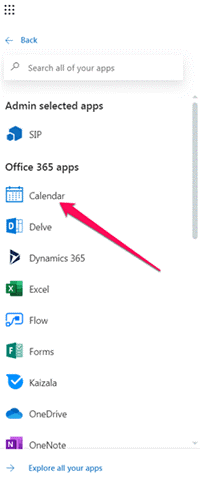 - Se não conseguir encontrar a aplicação Outlook Calendar (calendário) na lista, selecione «Todas as aplicações». Se a Outlook Calendar se encontrar na lista, selecione-a e avance para o quinto passo;